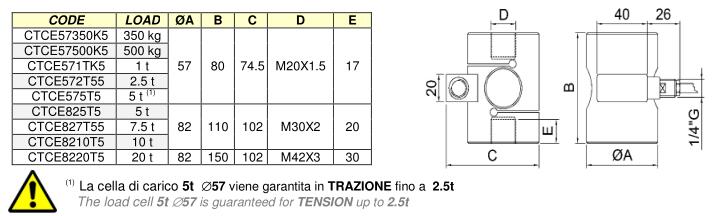 ?57:~1.5 kg ?82:~4.2 kg 20t:~5kg IP67 Acciaio Inox / Stainless Steel5m |