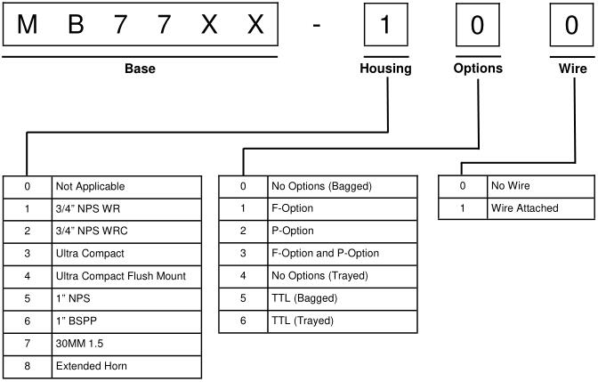 All part numbers are a combination of a six-character base followed by a dash and a three-digit product code. Please review the following table for more information on the three-digit product code.