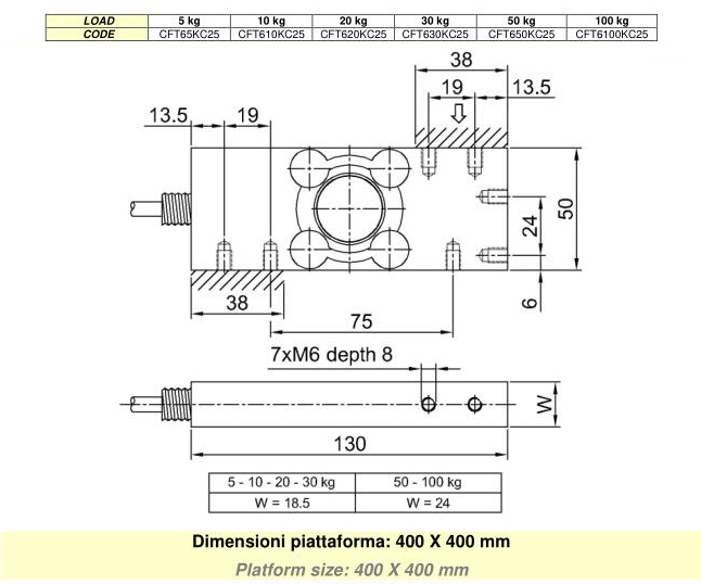 MECHANICAL LIMIT values referred to nominal load: a) minimum load b) service load c) max permissible load d) breaking load e) max transverse load f) max permissible dynamic load DISPLACEMENT AT NOMINAL LOAD |