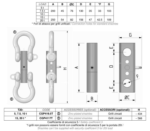 MECHANICAL LIMIT values referred to nominal load: a) minimum load b) service load c) max permissible load d) breaking load e) max transverse load f) max permissible dynamic load DISPLACEMENT AT NOMINAL LOAD |