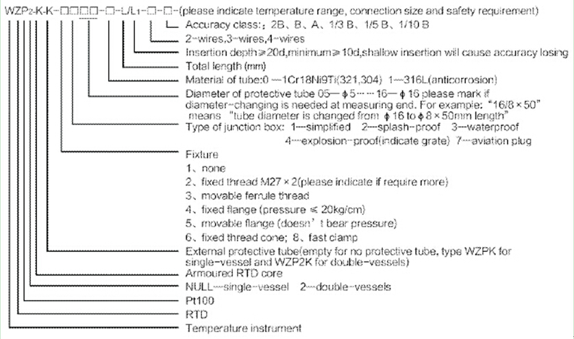 WZPKK-armored resistance core is placed in protective tube ofΦ6~16mm.