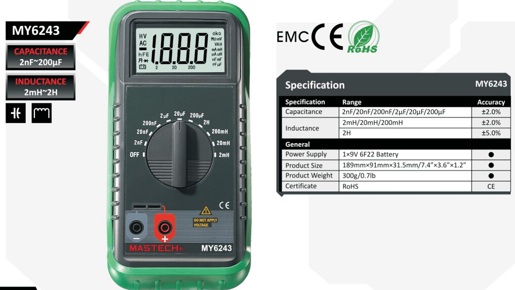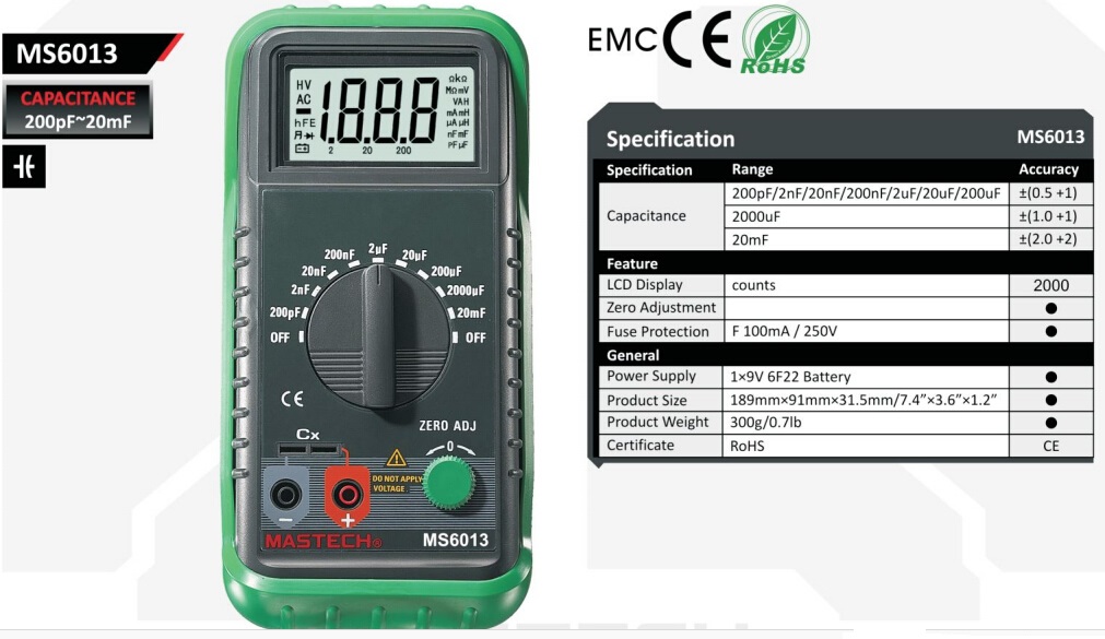 200pF/2nF/20nF/200nF/2μF/20μF/200μF: ±0.5%