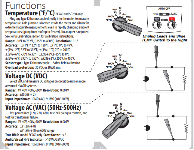Like all of our test instruments, the main benefit of the SC220 is that it was designed specifically for HVACR field service. It's rugged, has built-in safety features and includes most of the ranges you need for everyday testing. Some of the highlights include: