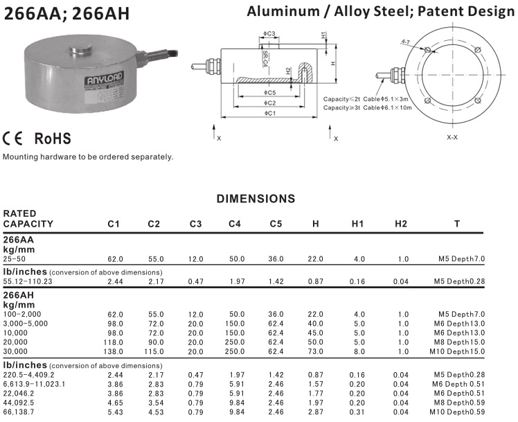 ? 266AH Rated Capacities: 100kg, 200kg, 300kg, 500kg, 1t, 2t, 5t, 10t, 20t, 30t