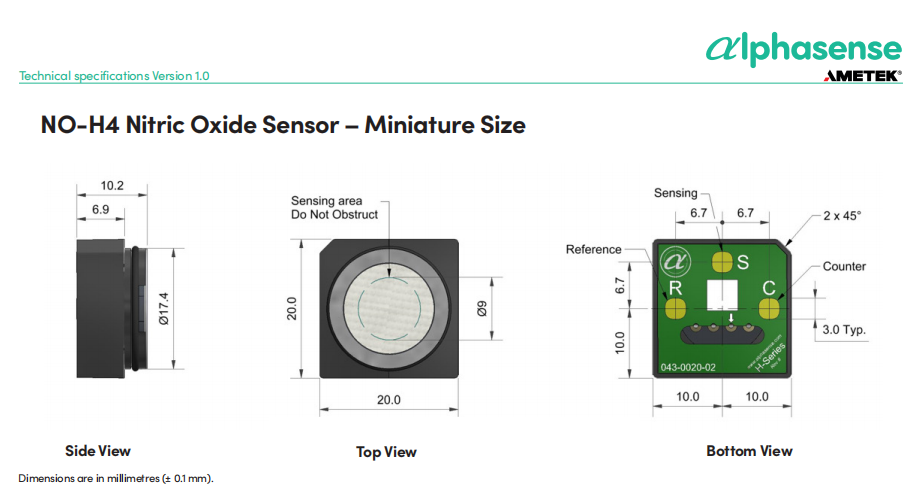 Electrochemical NO Nitric Oxide Sensor Miniature Size - NO-H4