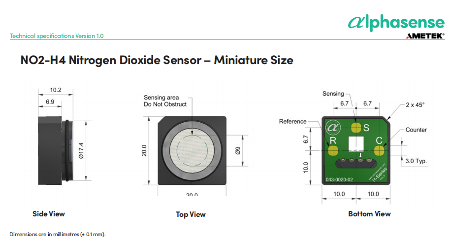 Electrochemical NO2 Nitrogen Dioxide Sensor Miniature Size - NO2-H4