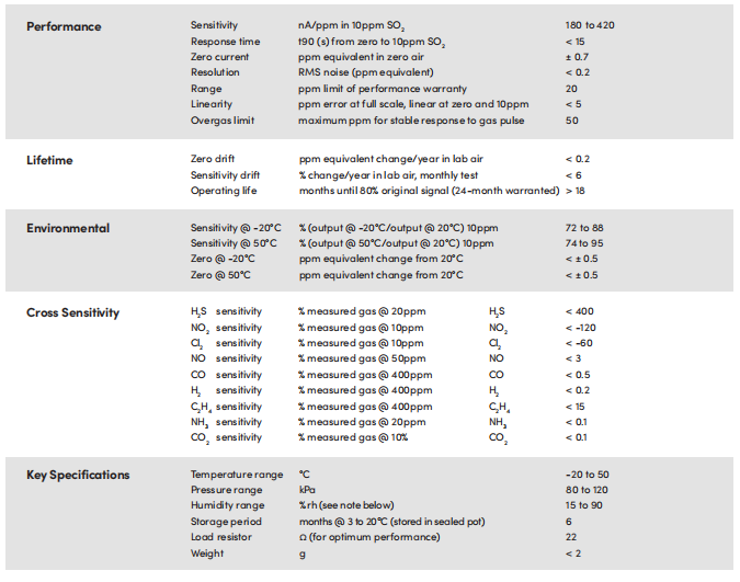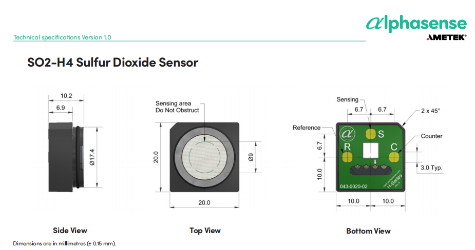 Electrochemical SO2 Sulfur Dioxide Sensor Miniature Size SO2-H4 specification: