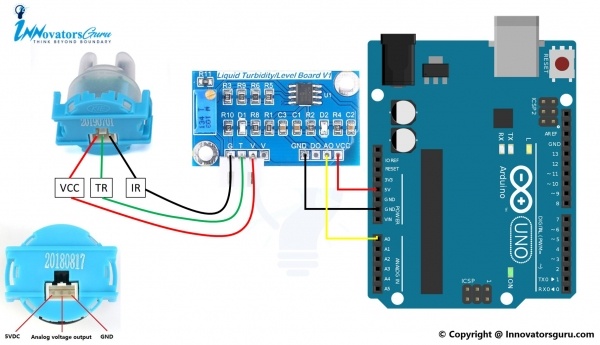 The turbidity of water refers to the degree of turbidity caused by suspended matter such as sediment, clay, organic matter, plankton and microorganisms contained in water. Industrial grade turbidity sensors or turbidimeters are expensive and not costly in electronics design; therefore, we have chosen a turbidity sensor that is widely used in household appliances washing machines and dishwashers.