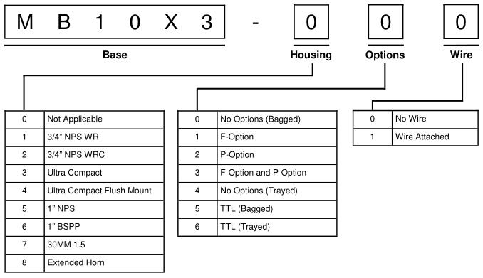 All part numbers are a combination of a six-character base followed by a dash and a three-digit product code. Please review the following table for more information on the three-digit product code.