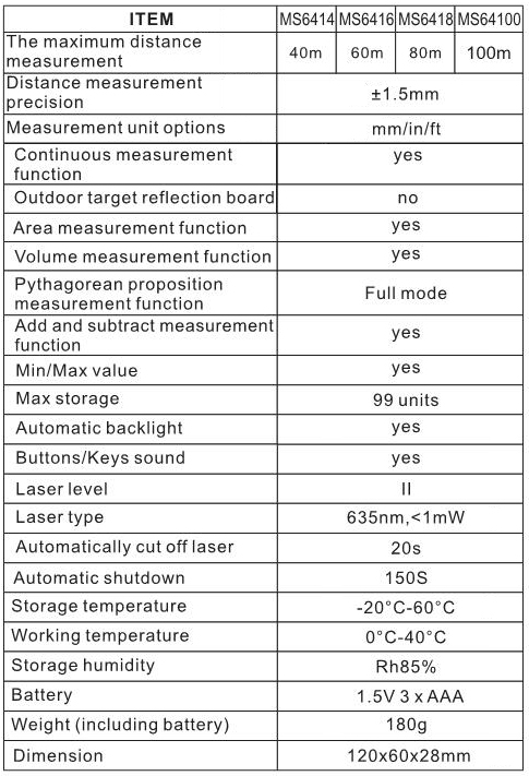 Laser Distance Meter MS6414 - MS6416/MS6418/MS64100