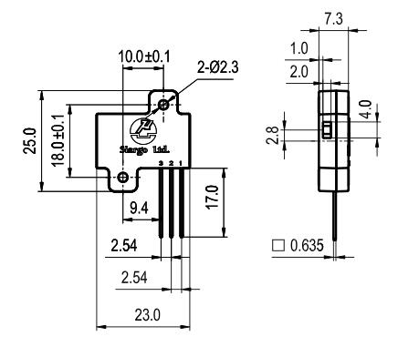 3 Pin, 2.54 mm centers, 0.635 mm square |