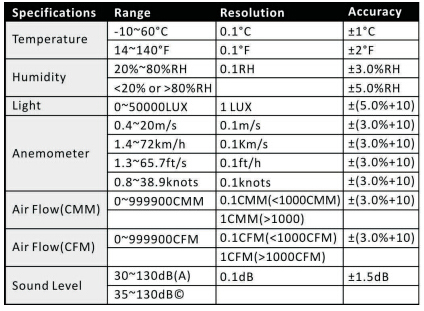 This meter is Digital Multifunction Environment Meter which combined the function of Sound Level, Luminometer, Relative Humidity Meter, Temperature Meter, and Anemometer.