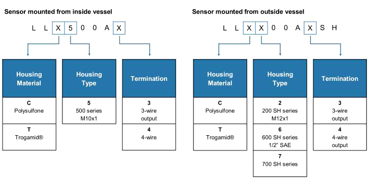 ? SH suffix applicable to 200, 600 & 700 series sensors only; omit from 500 series sensor part number