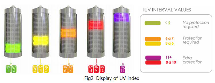- UV Index indicating in street, beach, swimming pool, park and so on