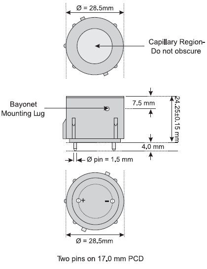 5FO Oxygen Gas Sensor Product Dimensions: