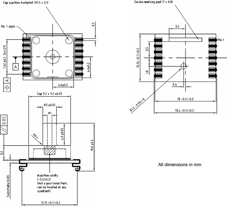 MS5536-60C SMD Gage Pressure Sensor Module Device Package Outlines