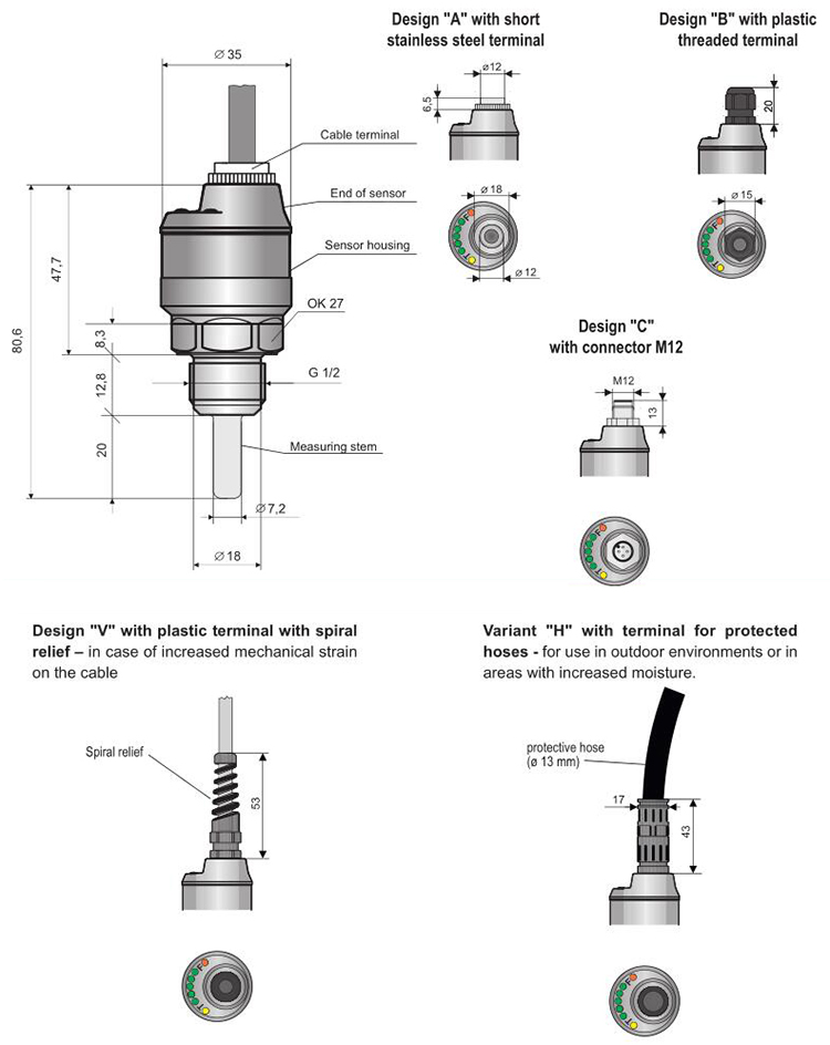 IP67 (design C) IP68 (design A, B, V, H) |
