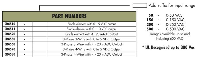 CR4510 True RMS AC Voltage Transducer PART NUMBERS