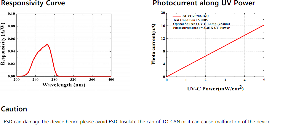 5. GUVC-T20GD-U UV Sensor Characteristics (at 25℃)