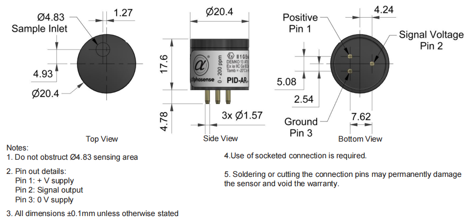 VOC Photo Ionisation Detector/PID sensor - PID-AR5