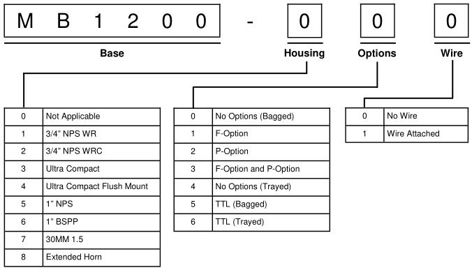 All part numbers are a combination of a six-character base followed by a dash and a three-digit product code. Please review the following table for more information on the three-digit product code.